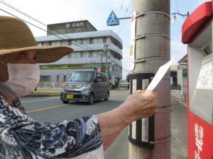 書き上げたハガキはひごっ家の近くにある合志合志川橋沿いのポストへ投函に行きました📮