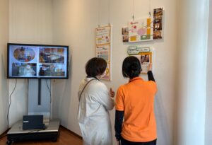 ひごっ家の紹介パネルの掲示や季節の行事などの写真を映像に流したり、相談コーナーを設けました。