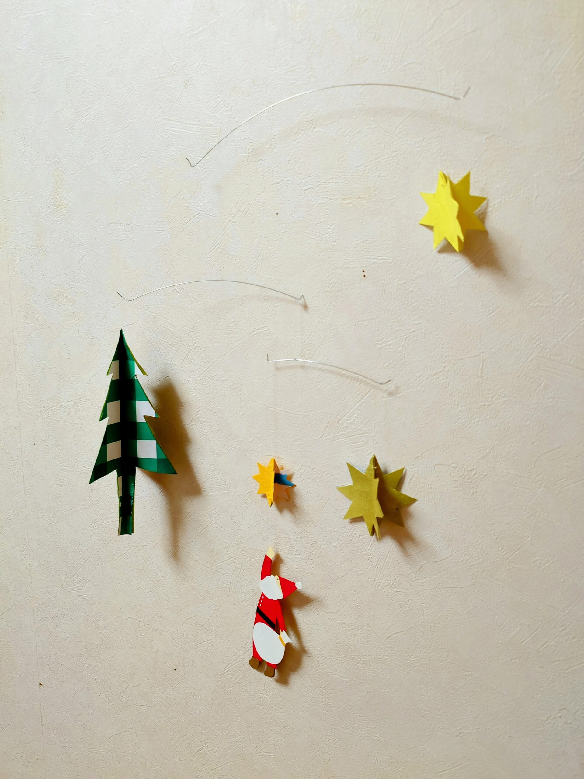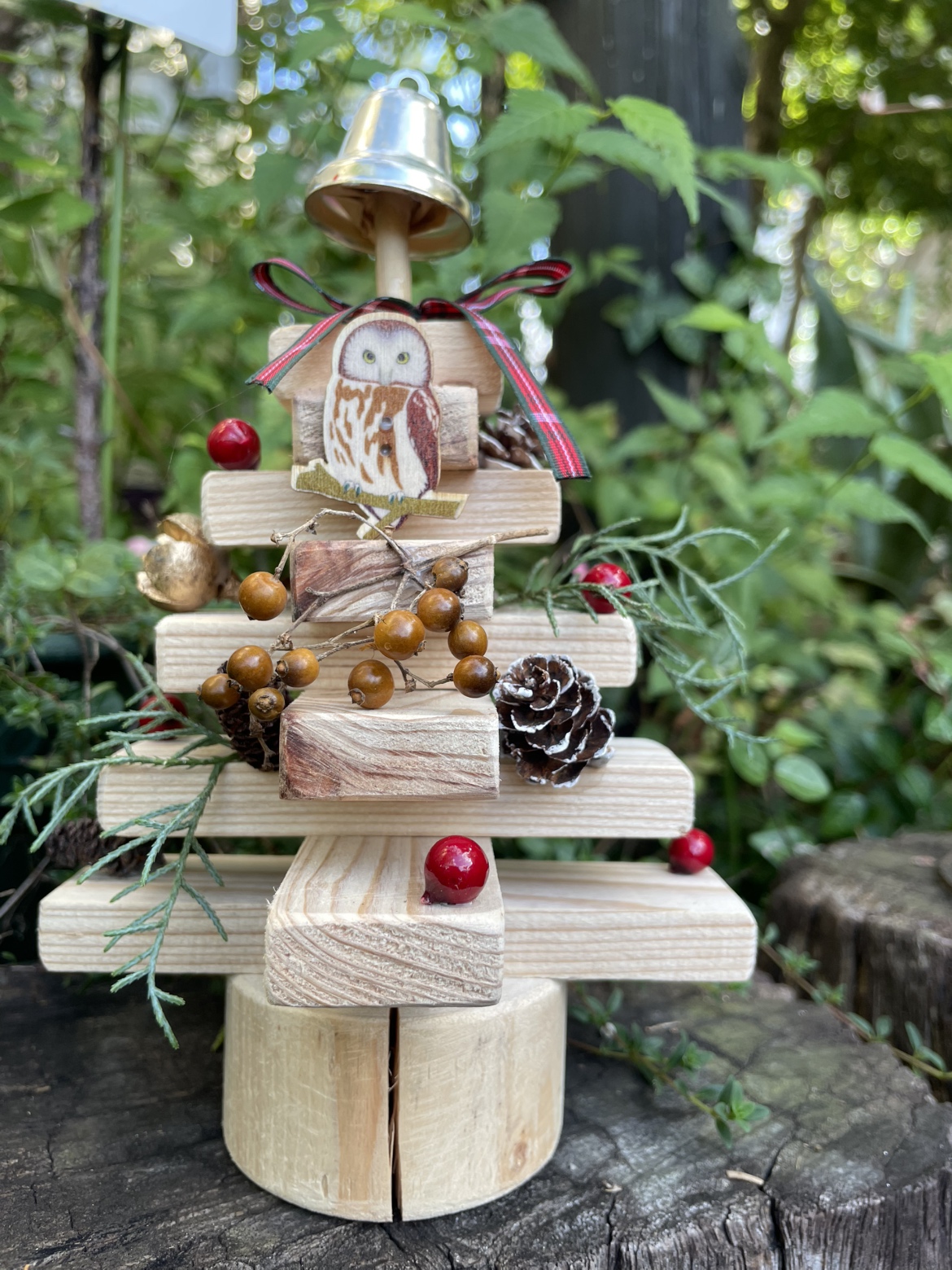 長さの違う木材を重ねて、好きなオーナメントを貼り付けて…自分だけのオリジナルツリーの完成❢