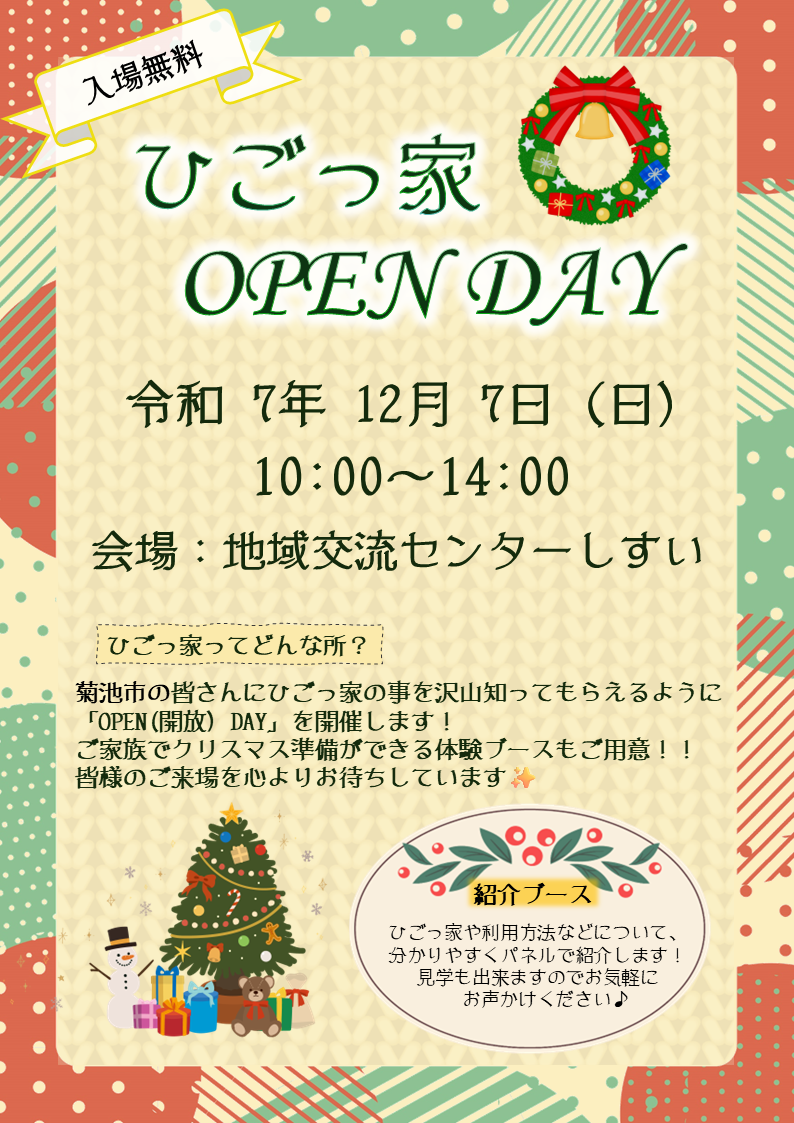 お知らせ2025年11月25日ひごっ家OPEN DAY を開催します❢🎄