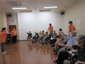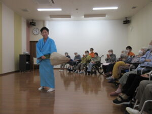 出し物では、ボランティアとして十六夜会様によります日本舞踊を披露していただいたり、抽選会としてじゃんけん大会を行ったりし、勝者には景品のお菓子を贈呈させていただきました。