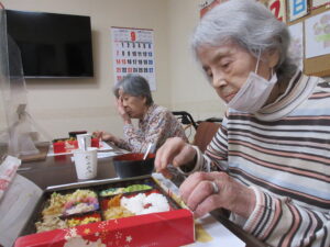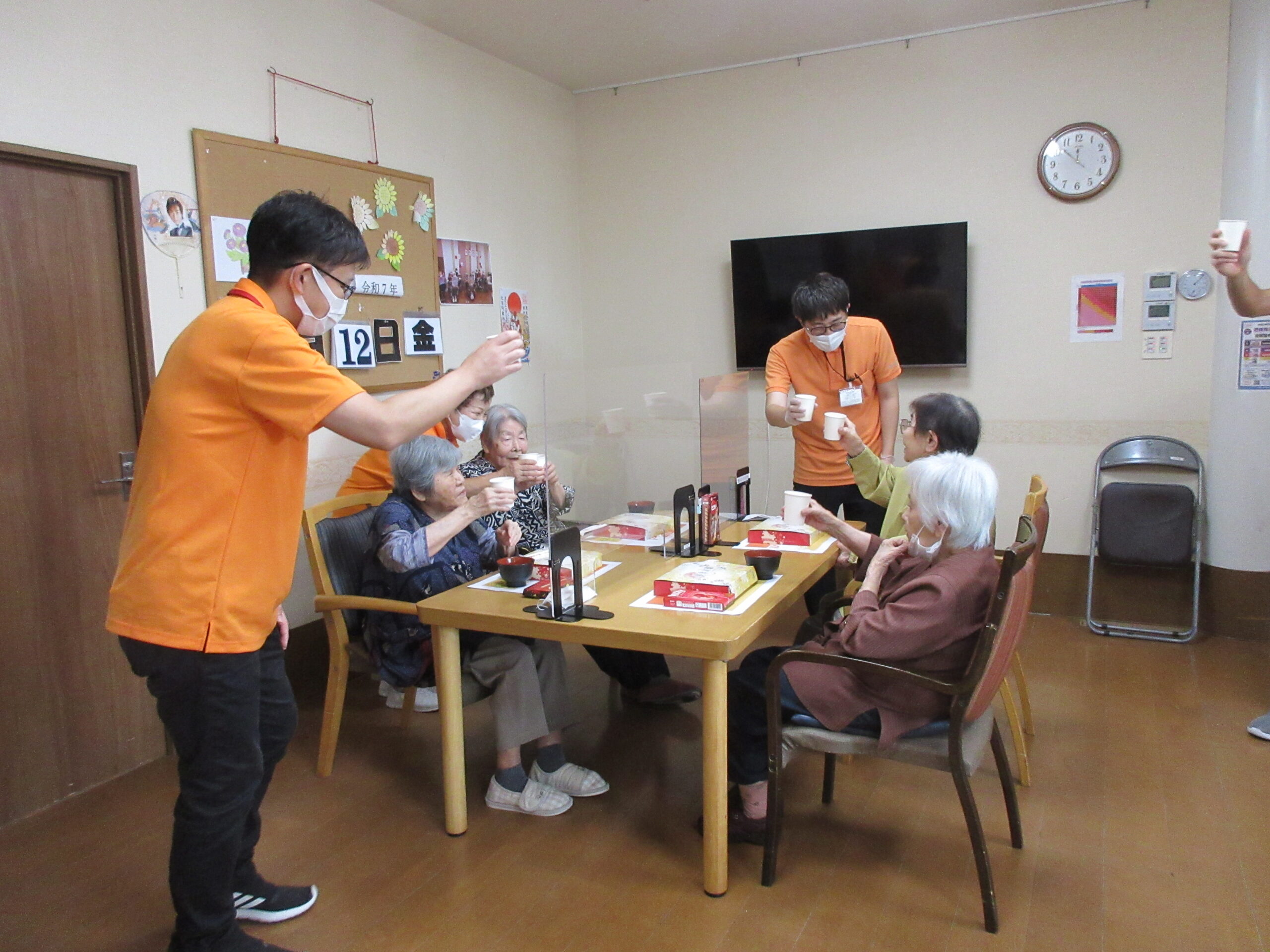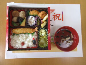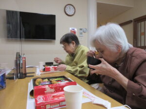各ユニットに戻ってからは乾杯のあいさつ後お祝いのお弁当を皆で舌鼓を打ちながら味わうことができました。